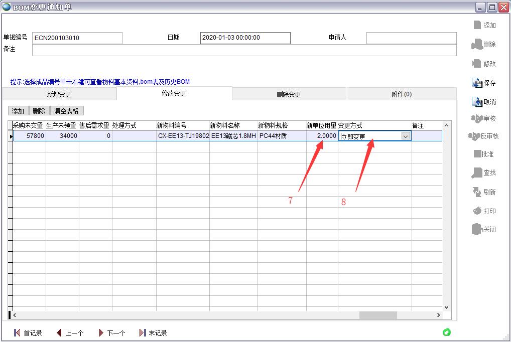 BOM變更后的變化: