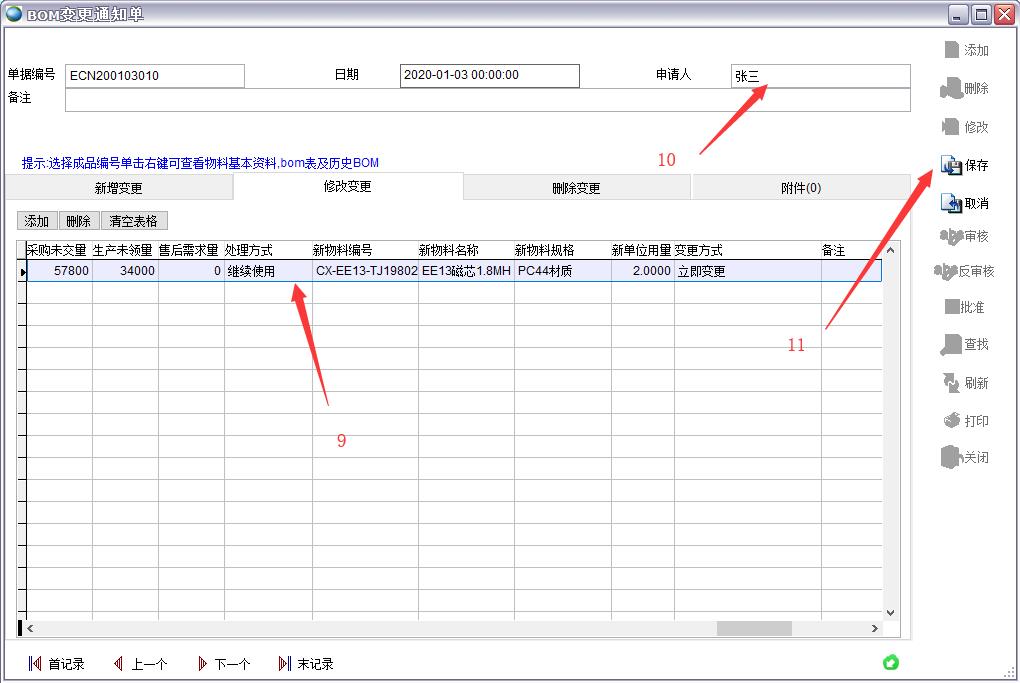 7、點保存,保存后BOM會自動發生變更。
