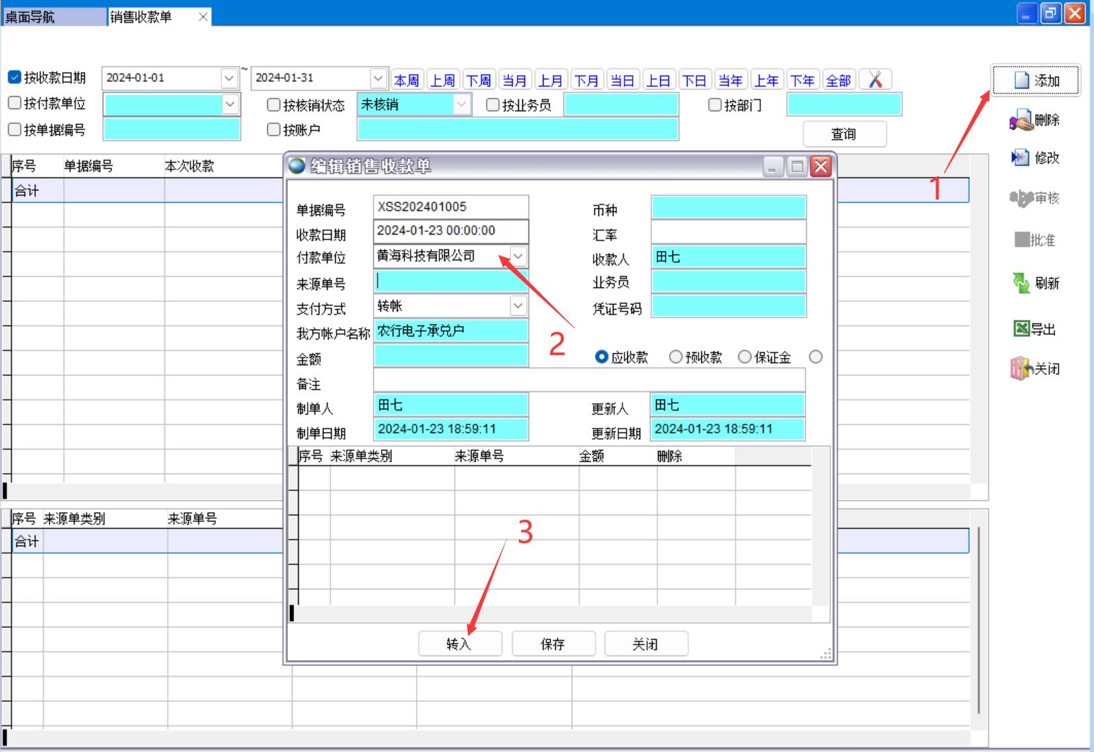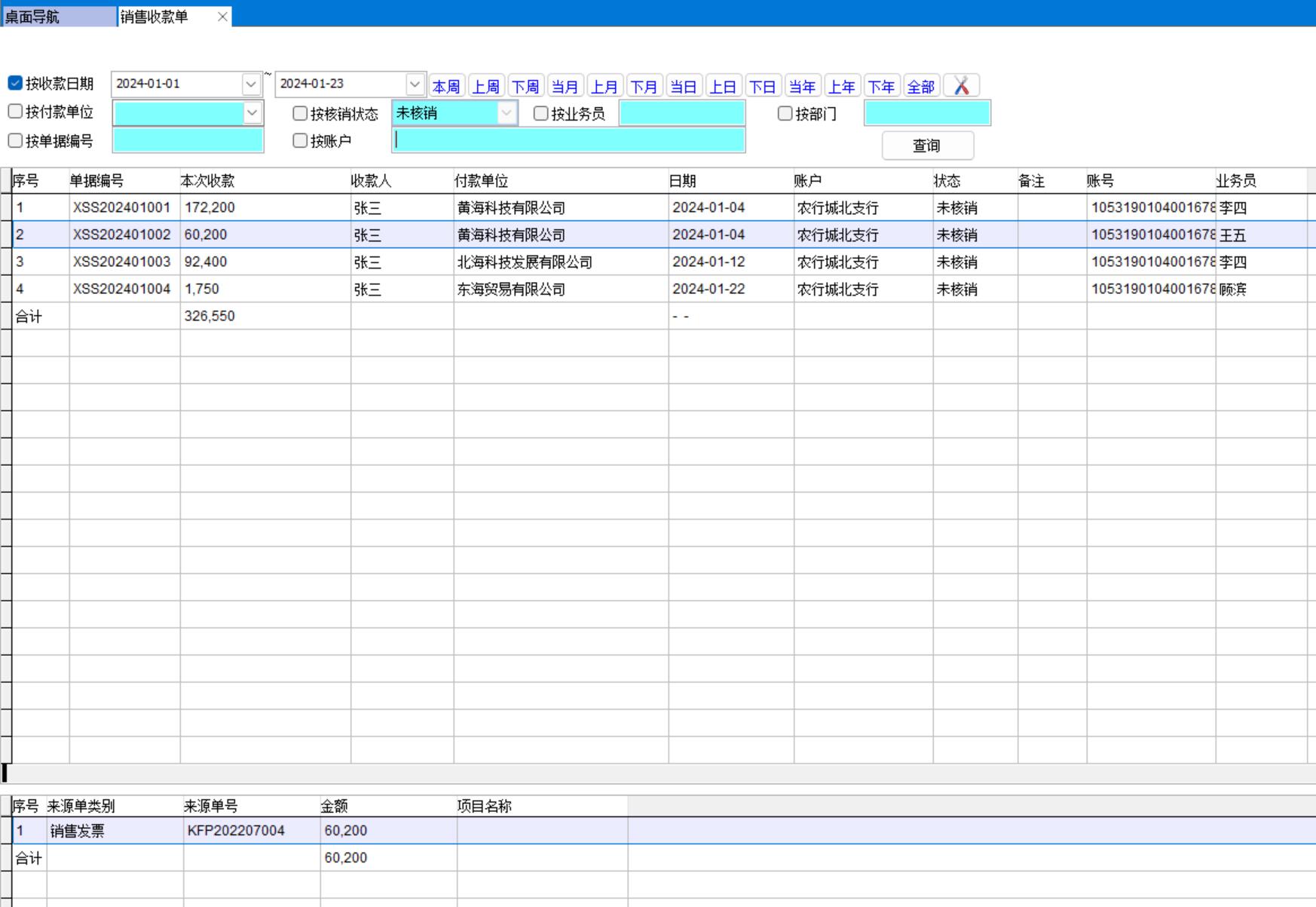 打開路徑:【主菜單】->【應收應付】 -> 【應收】 -> 【銷售收款單】