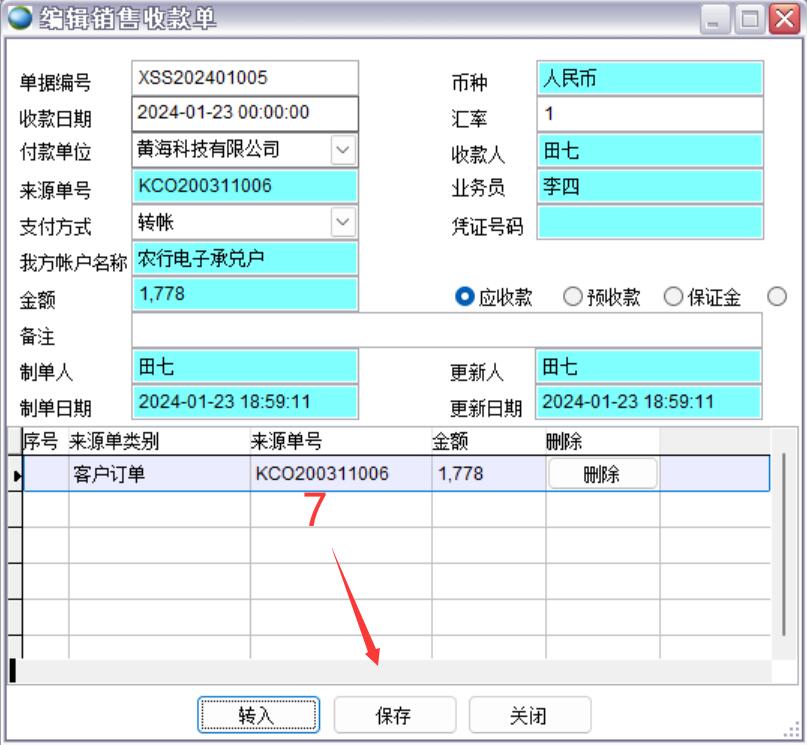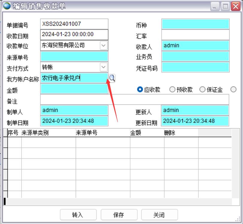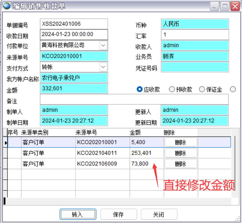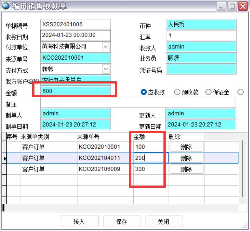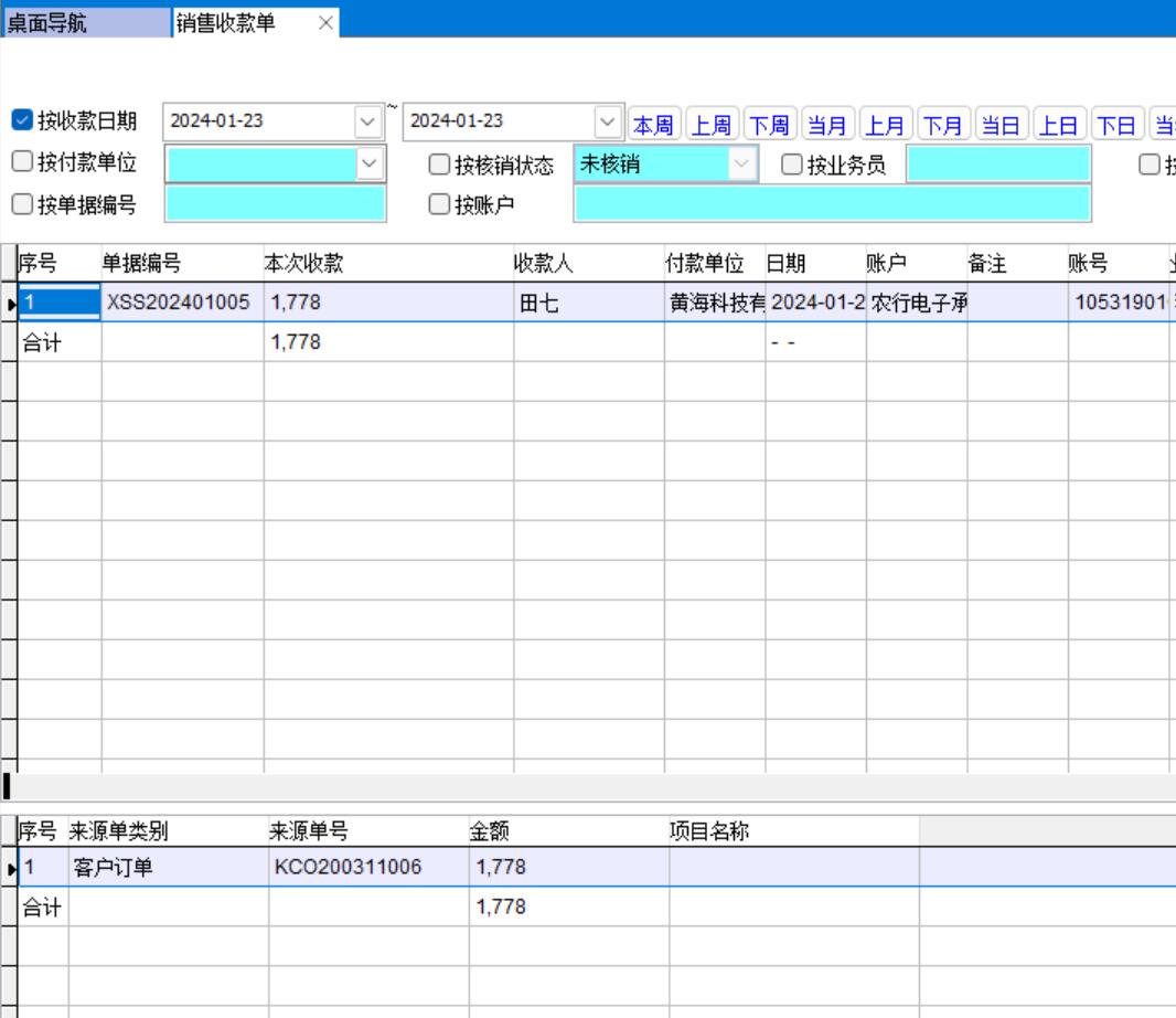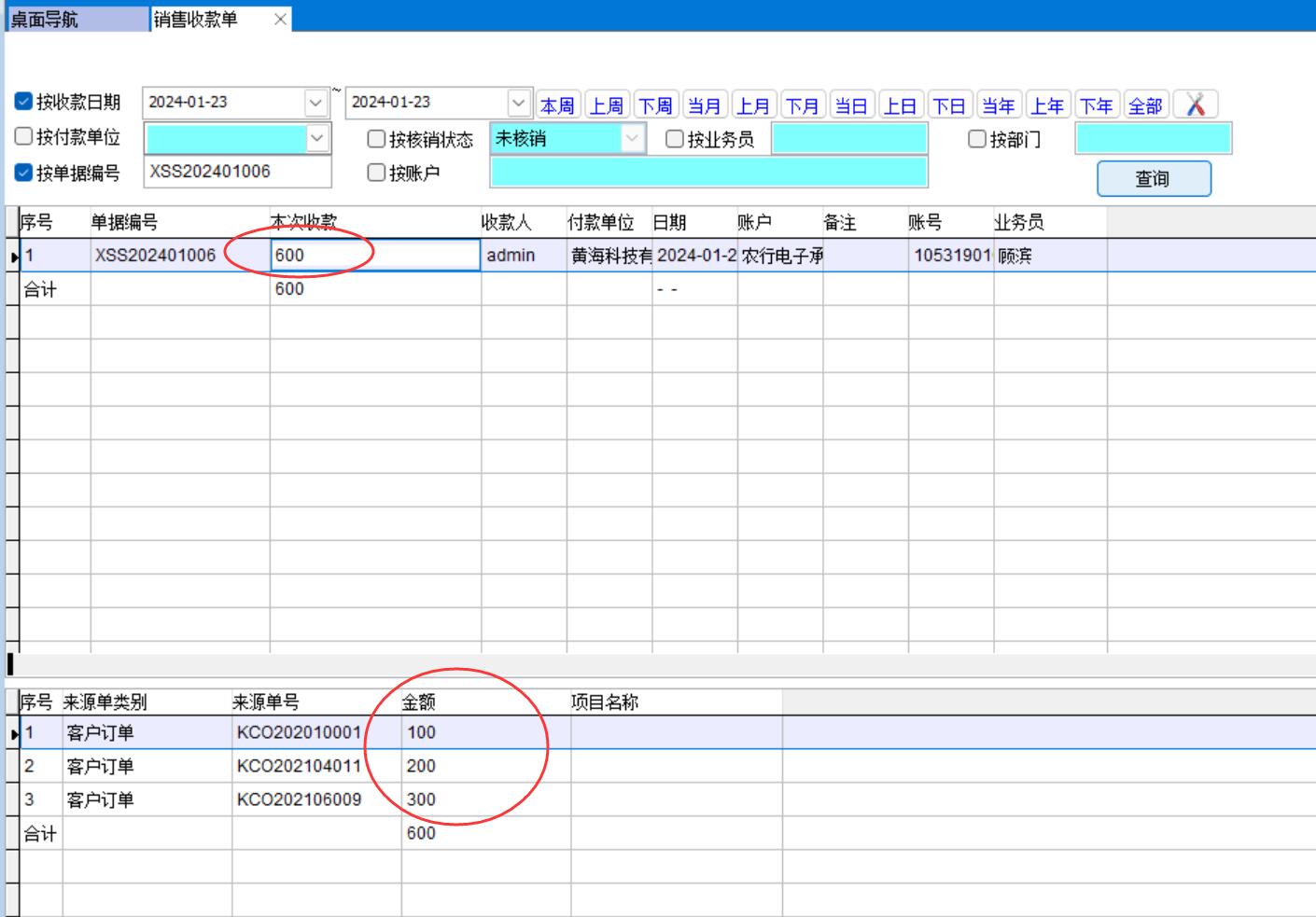 銷售收款單必須引用來源單據(jù),比如訂單金額1萬,現(xiàn)在預收50%,就引用客戶訂單做銷售收款單,這樣才能知道該訂單已經(jīng)收了50%了,還有50%未收。