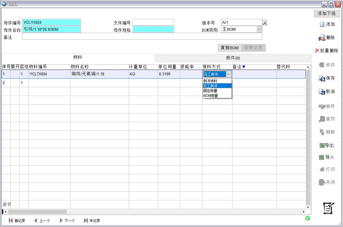 點按BOM轉入可以將一個已存在的BOM復制到一個新的BOM中。