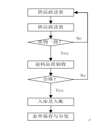 采購到貨時,在還沒有完成檢驗作業的情況下,如需求部門急用,則由需求部門先寫一張借條,等此貨物檢驗合格并完成入庫后,生產部門再補登領料單。對于此作業類型在本系統中不予考慮(手工處理)。采購入庫時先入待檢庫區,由倉庫開出會驗通知單,交相關檢驗人員進行檢驗,開出驗收單,如果驗收合格,則進行移倉,并記入倉庫臺帳。對于此作業類型在本系統中不予考慮(手工處理)。
