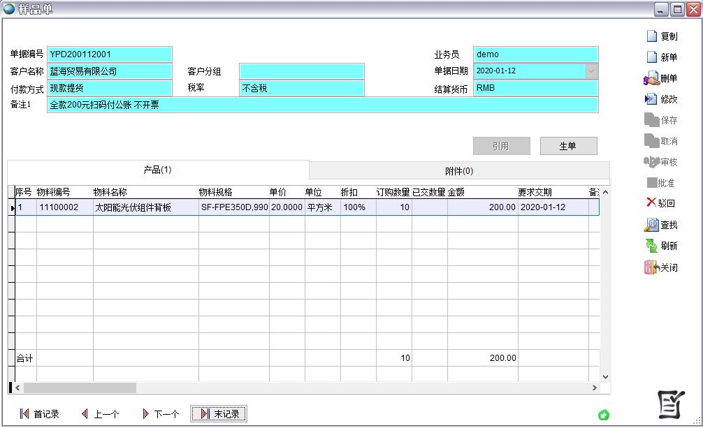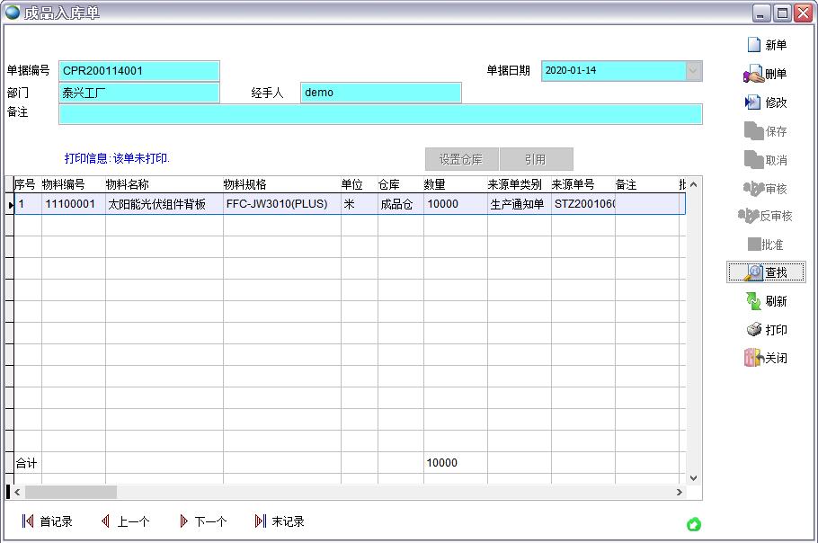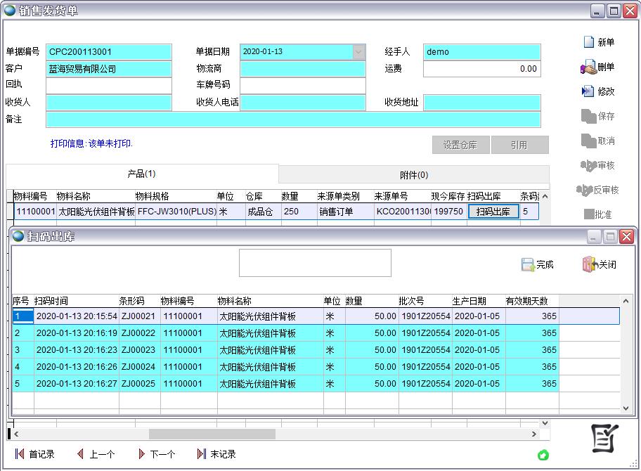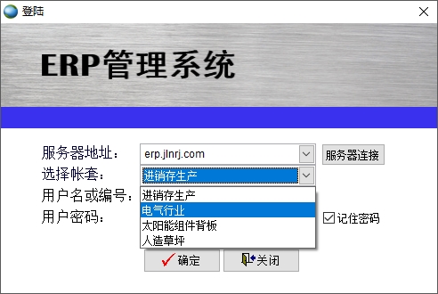 3、測試連接通過后重新登錄,用戶名:DEMO,密碼:1,選擇賬套:太陽能組件背板