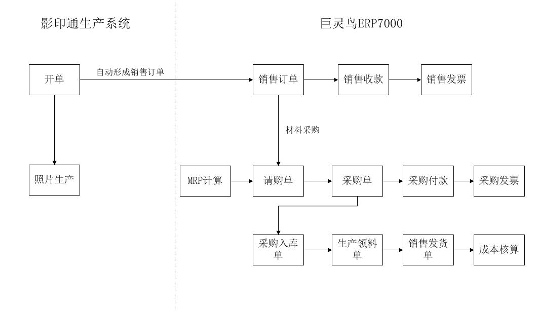 影印通生產系統可以單獨使用,也可以和巨靈鳥ERP無縫集成